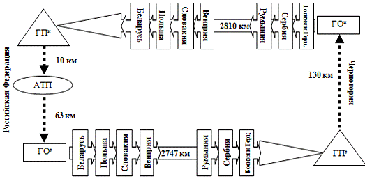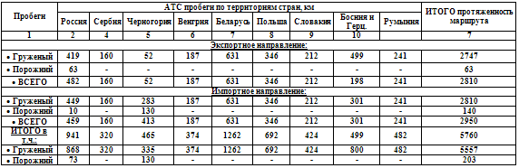 протяженностей участков маршрута следования АТС по территории стран с разбивкой