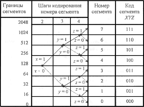 Код сегмента - 011 (3й сегмент): шаг квантования