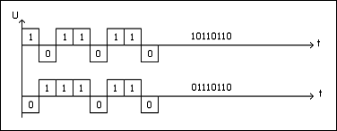 "0"-отсутствие импульса, "1"-импульсы длительностью