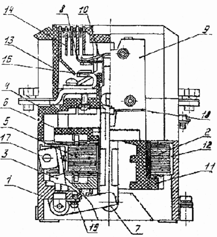 дугогасительной системы, приводного электромагнита с передаточным механизмом.