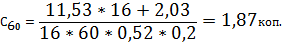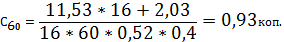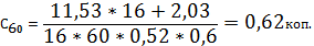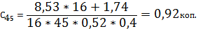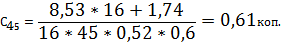 С - себестоимость перевозки, коп/10 пассажир.-км;