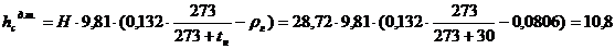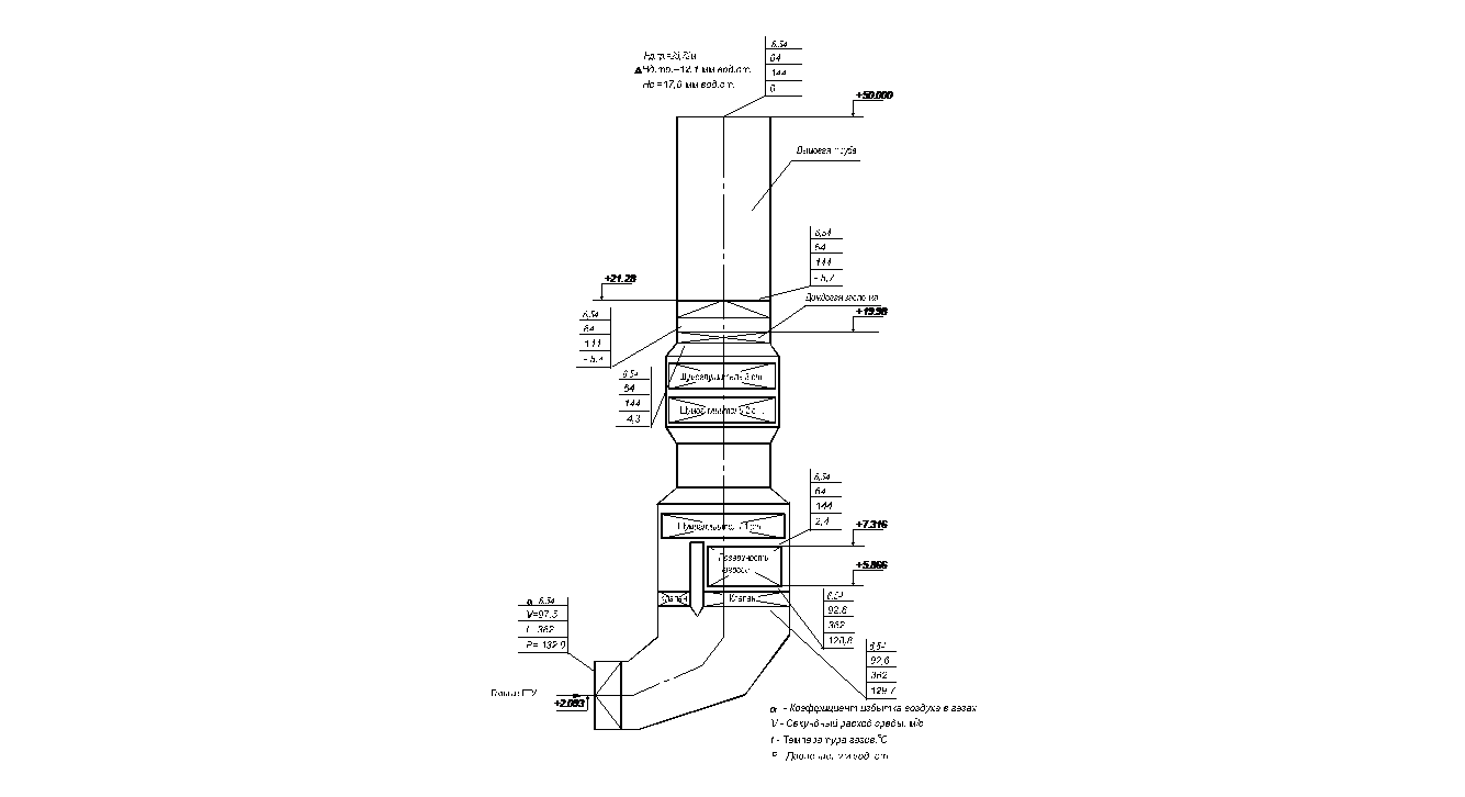 Самотяга дымовой трубы: Н=50-21,28=28,72 м; t =164 °C