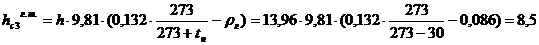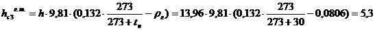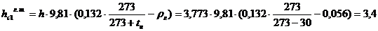Самотяга газового тракта: h1=5,866-2,093=3,773 м; t=362 °C