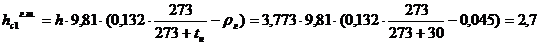 Самотяга газового тракта: h1=5,866-2,093=3,773 м; t=508 °C