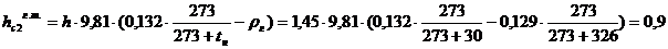 h2=7,316-5,866=1,45 м; t=(508+144)/2=326 °C
