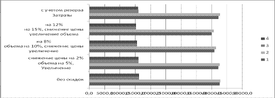 целесообразнее увеличить объем на 15% и сделать скидки на 12%, что дает