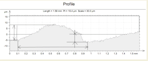 длиной 0,6мм а после края (при Х в диапазоне 4 мкм ) имеется снижение уровня