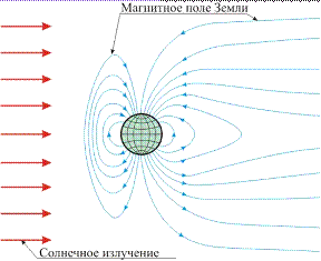 же приведен рисунок, представляющий главное геомагнитное поле. Рассмотрен