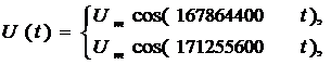 U1(t) = cos(167864400t),(t) = cos(171255600t).