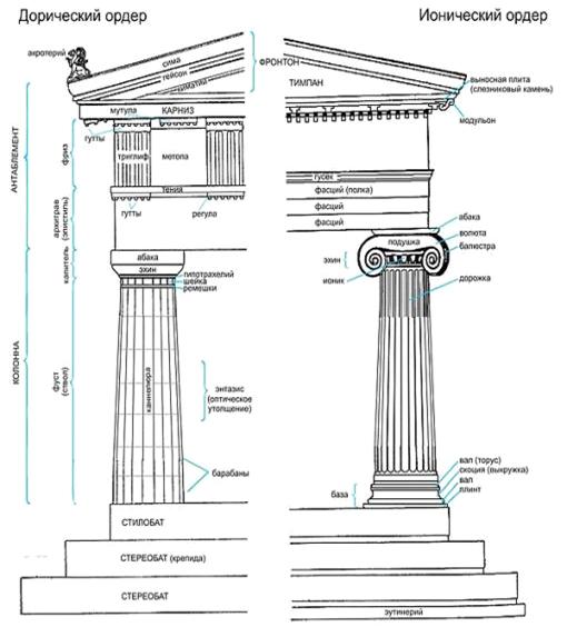 дорический и ионический. Масштабом всех частей ордера является радиус колонны в