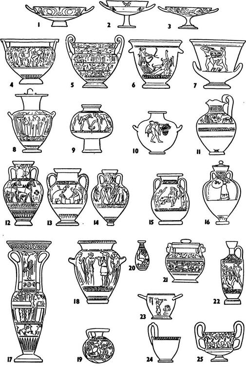 Рис. 13. Типы греческих сосудов: 1-3 - килики:
