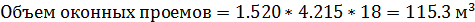 Суммарную площадь окон (в свету) определяем по