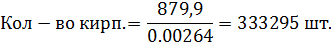 Определим количество кирпичей, необходимых