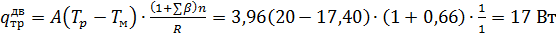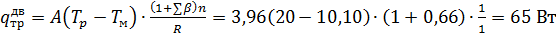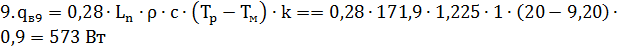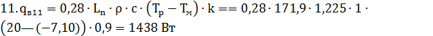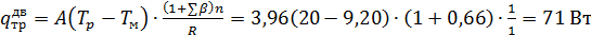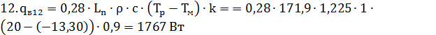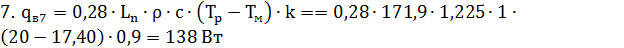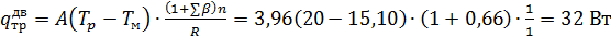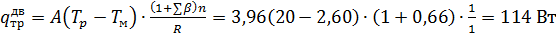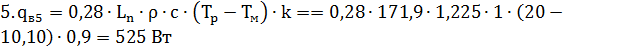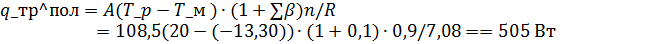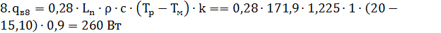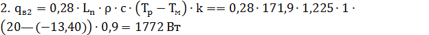 где Tp =200С - расчетная температура воздуха,0С, в помещении;ext = -7,50С - средняя расчетная