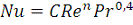 где C и n коэффициенты зависят от величины числа Рейнольдса и выбираются по