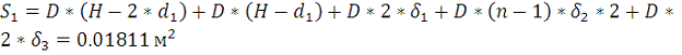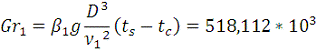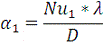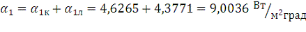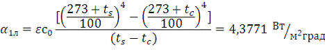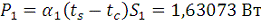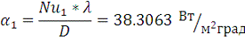 Вычисляем коэффициент теплоотдачи конвекцией для поверхности S1