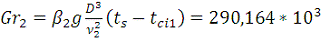 Вычисляем коэффициент теплоотдачи конвекцией для поверхности S2