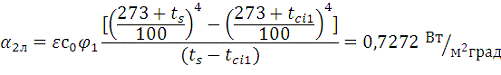 .7 Определяем коэффициент теплоотдачи с поверхности