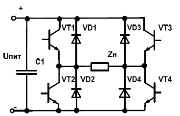 одновременно двумя транзисторами (VD1 - VD3; VD2 - VD4), реализуя, таким образом,