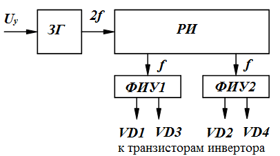 инвертора. Импульсы с задающего генератора поступают на распределитель