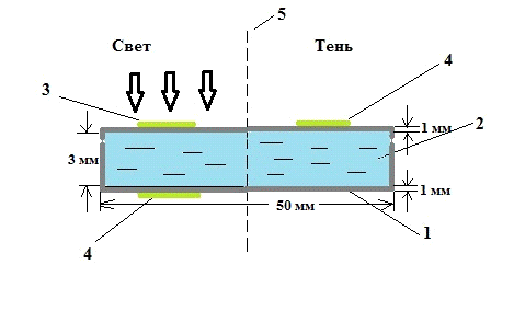 также и в том случае, когда между диодами и кюветой имелся малый (~1 мм) зазор.