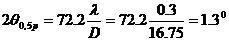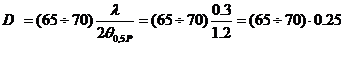 По заданной ширине диаграммы направленности определяем диаметр зеркала.