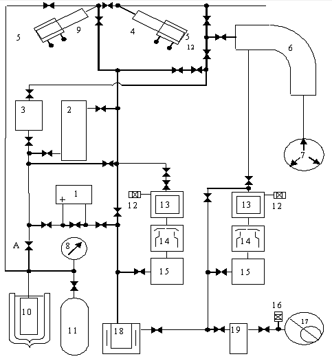 (рисунок 2.1, А,16,14). Затем напускается в отсеченный объем гелий из баллона.