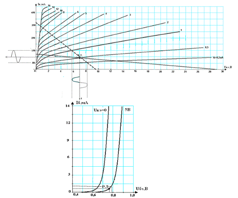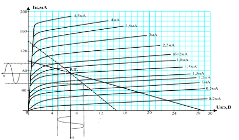 рабочая точка не заходит в не линейный участок это соответствует: UКЭ0=14,2 В, Iб0=8 мА, UбЭ=0,71 В, Iко=500 мА.