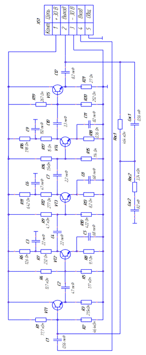 Рис. 1. СЭП 5 каскадного УНЧ на транзисторах