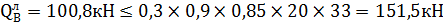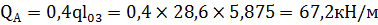 =0,75gswc0=0,75´1,43´56,32=60,4кН=Qmax-q1´с=100,8 - 22,0´10-2´56,32=88,4кН