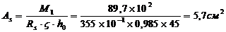 сечение рассчитываем как прямоугольное с bf=216,7 см.