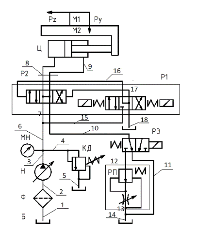 Рис. 1 - Принципиальная гидравлическая схема привода