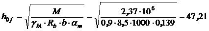 h0 = h - a = 220 - 30 = 190 мм (а = 30 ÷