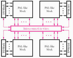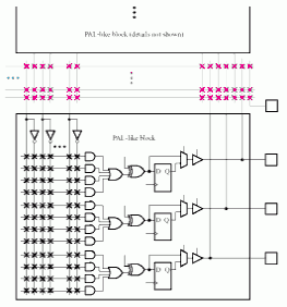 Рисунке 2 приведен пример внутренней структуры PAL-like блоков и их соединения