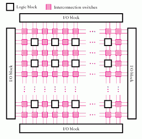 выводами чипа и программируемые ключи для создания соединений между блоками.