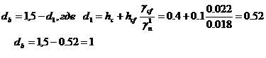 пола d1 = 1+0,1*0,022/0,0188=1,117 м db =1,5-0,5=1м