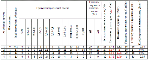 Образец №4 грунт отобран из скважины № 1 с глубины 15м (табл. 1) так как Wр = 0 и Wl = 0 и содержание частиц крупнее 2 мм