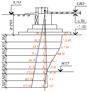 Вес свай С13-35 40,3 кН. Вес наголовника примем 2 кН.