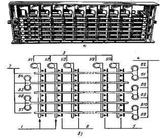 планки, 3,4 втримуючі У1 У 10 і вибираючі В1 В10 електромагніти, 5 контактні