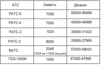 а також нумерацію АЛ. В абонентських номерах виокремив цифри