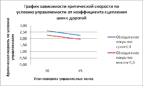скорости по условию управляемости от коэффициента сцепления шин с дорогой