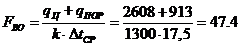 Поверхность водоохладителя определяется по выражению