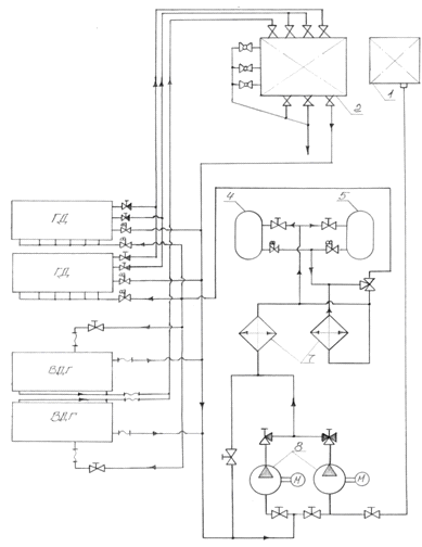 Схема масляной системы смазки ГД