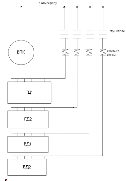 Схема газо-выпусконой системы.