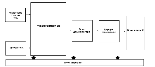 індикатор і блок живлення. Блок живлення складається з випрямляча,