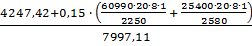 = 1,08 ∙(17,26∙1 + 7,32∙1)∙20∙8 = 4247,42