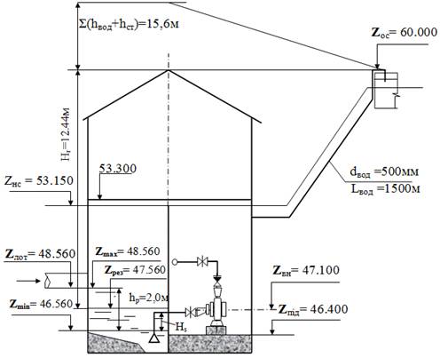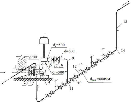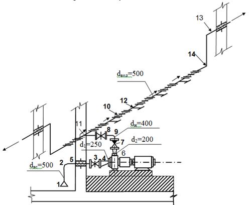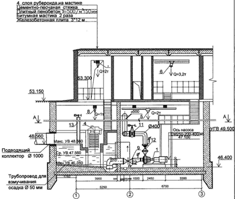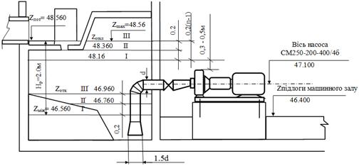 Рис. 1. Висотна схема каналізаційної насосної станції