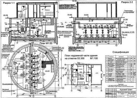 Рис. 17. Загальний вид креслення насосної станції: а) з