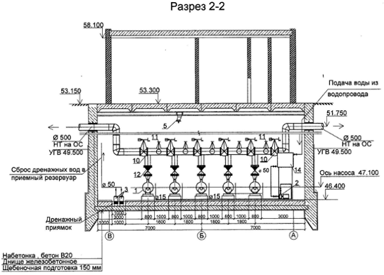 Рис. 18. Розріз 2-2 насосної станції з насосами типу СМ