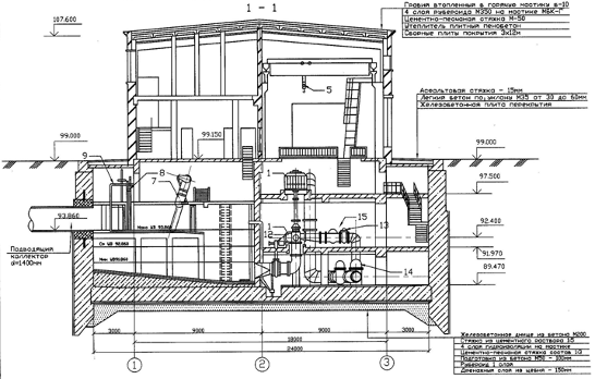 Рис. 22. Розріз 1-1 з вертикальними насосами типу СДВ
